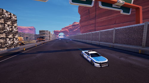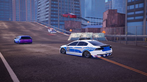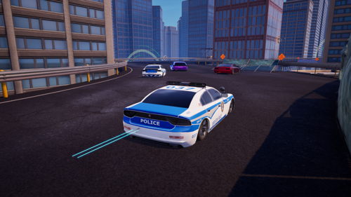 Dans Police Simulator – Rush!, les joueurs peuvent affronter jusqu'à sept pilotes avec une sélection de voitures sur le thème de la police et des voleurs. Ces dernières sont équipées de gyrophares pour les véhicules de police et de lumières sous le châssis ainsi que d'une musique entraînante pour les voitures adverses. Pour atteindre la première place, ils devront maîtriser les sauts, se faufiler dans un trafic dense, collecter des pièces et utiliser judicieusement leur accélérateur dans les rues sinueuses de la ville, sur une autoroute très fréquentée et dans des tunnels étroits.